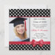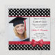 bolinhas pretas, brancas e vermelhas, Festa de formatura de fotografia Convite. Observe que: fita e arco são imagens impressas. Para redimensionar e posicionar sua foto, clique no botão "PERSONALIZAR TI". Você pode ajustar o texto de acordo com suas necessidades - alterar a fonte, a cor ou o tamanho.