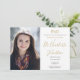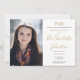 Um convite elegante de festa de formatura de doutorado em chic que pode ser personalizado em um roteiro dourado com sua foto de formando e detalhes de celebração. Projetado por Thisnotme©