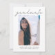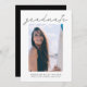 Modelo de cartão de anúncio de graduação moderno e simples para formandos de segundo grau ou de faculdade! Preto e branco com uma foto personalizada com texto no topo que diz "formando" no roteiro moderno. Personalize este produto adicionando o nome do formando, a escola, a data de graduação. No verso, diz "parabéns" e você pode adicionar os detalhes da festa abaixo. Elegante e design de tendências para os minimalistas.