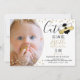 Engraçado como Bee pode ser o primeiro convite de aniversário com foto. Adorável tema de abelhão de madeira, primeiro convite de aniversário com um toque de cintilação, faux confetti em torno da moldura de foto. Este primeiro convite de aniversário editou texto preto e dourado com listras douradas na parte traseira da placa, mudando as cores conforme preferido.