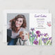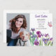 Iris faz dezesseis anos com flores bonito em campo selvagem, em roxo, lavanda, folhas verdes e muito mais, com tipografia com script escovado em uma elegante foto e fundo editável.