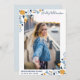 Comemore seu formando em estilo com este convite/anúncio de festa de formatura com sua foto enquadrada por bonito flores azuis e douradas. Adicione os detalhes da sua festa ao fundo. Trendy e na moda, porém simples e clássico, o convite perfeito para celebrar a grande conquista do seu formando.