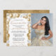 Convites Foto de Frente Branca Dourada Quinceañera Balão