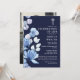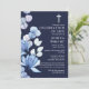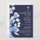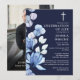 Este convite de celebração de vida e lembrança cristã floral azul marinho elegante pode ser personalizado com suas informações em tipografia clássica e uma foto de seu ente querido no verso. Projetado por Thisisnotme©