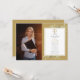 Apresentando delicadas folhas verde-aquarela em fundo de ouro, este convite para festa de formatura da faculdade de direito chic pode ser personalizado com sua foto de formando e detalhes de celebração. Projetado por Thisnotme©