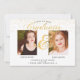 Este design apresenta um script de rico com pontos brilhantes do ouro, perfeito para formandos gêmeos. Fácil de personalizar com suas fotos e informações de graduação.