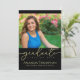 Comemore sua conquista com este cartão com fotos de graduação que inclui um modelo de foto de formando e um roteiro de caligrafia dourada para um toque de eterno. O design preto e dourado adiciona um estilo de tipografia ousado, mas elegante, perfeito para anunciar sua classe de marcos. Seja para segundo grau ou faculdade, este cartão de tendências simples, minimalista e na moda mostra lindamente suas fotos de mais velho. Personalize o seu hoje para um anúncio sofisticado de graduação!