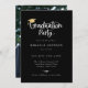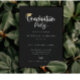 Script branco reproduzível com sotaque de boné de formatura ouro, convite de festa de formatura. Recursos, fundo preto colorido e foto do solteiro no verso.