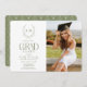 Este convite de festa de formatura chic apresenta um monograma rodeado por uma crista botânica e um arco verde. O verso apresenta um fundo verde com padrões geométricos. Personalize-o para as suas necessidades. Você pode encontrar produtos correspondentes na minha loja.