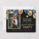 Convites Foto de Graduação Dourada Azul Salvar a Data
