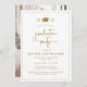 Convite Fotográfico Elegante para Graduação Dourada. Nossos Convites para Graduação de Script Simples Elegantes misturam sofisticação com comemoração. Cada convite ostenta um motif clássico de boné de formatura e um roteiro de caligrafia manuscrito gracioso. Disponíveis em várias cores, incluindo preto e branco, azul marinho, verde escuro, vermelho escuro, roxo e ouro, esses convites atendem a cada estilo de formando. Aumente seu anúncio com fotos personalizadas de graduação e complemente seu evento com itens coordenadores, como anúncios, etiquetas de endereço, envelopes, sinais de boas-vindas, banners, placas de jardim e artigos de mesa essenciais como placas de papel, guardanapos, xícaras e refrigeradores. Celebre este marco em estilo com a nossa coleção de tendências.