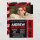Convites Foto de Graduação Moderna Preta e Vermelha