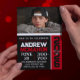 Convites de Fotografia para Graduação Vertical Preta e Vermelha 1 Foto - Repetição de Ano de Aula