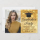Convites Foto de Graduada com Brilho Dourado Chic Festa de