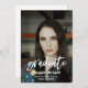 Anúncio de graduado com script moderno. Se desejar, o verso do cartão pode ter texto adicionado para mais informações sobre educação ou festa de casa aberta