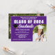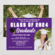 Este convite de festa de graduação personalizado moderno roxo e branco apresenta uma tipografia branca clássica do nome da sua faculdade para a turma de 2025. Personalize com o ano de sua graduação sob o script manuscrito chique e o boné de graduação preto para ótimos convites. Adicione os detalhes da sua festa ou cerimônia ao lado da foto do seu graduado.