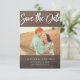 Anuncie seu noivado e o próximo casamento com este simples cartão de salvamento. Este cartão apresenta um tema simples de grãos de madeira rústicos. Personalize com uma foto e uma mensagem com todos os detalhes do seu casamento na frente e atrás da carta.