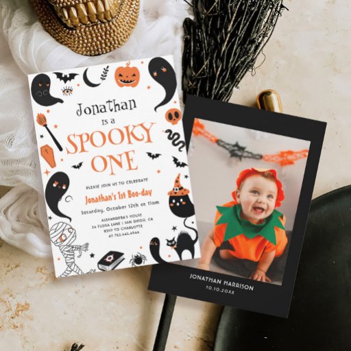 Convites Foto de Halloween Spooky One Boy primeiro aniversa