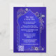 Apenas uma elegante recepção de casamento, poste ou após convite de casamento com padrões de henna estilizados prateados impressos em um fundo azul de índigo e roxo profundo. Um modelo de código QR opcional é adicionado para sua conveniência. É bom compartilhar fotos do seu casamento! No verso está a opção de adicionar a sua própria fotografia. Você também pode excluir a imagem modelo para revelar um plano de fundo azul correspondente. Bonita para uma celebração de casamento ao estilo indiano ou árabe.