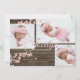 Flores cor-de-rosa e madeira de celeiro, boho chic, três fotos de anúncio de nascimento de bebê. Bonito flores cor-de-água rosa adoram as lindas fotos da sua pequena. A madeira escura contrasta o fundo do quadro e o nome próprio do guião manual elegante no centro apresenta-a suavemente.