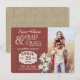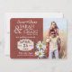 Salve a data rústico em madeira de celeiro vermelho com foto acentuada com margaridas. Design de aniagem na parte de trás. Personalize o texto conforme preferir e adicione um endereço de site de casamento ou outras informações no verso.