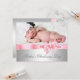 cinzas prateadas bonito perguntam às meninas de arco cor-de-rosa fotos batizando o modelo. Adicione sua foto e detalhes à frente e/ou atrás deste elegante batismo rosa e cinza ou convite batizante, simplesmente escolhendo o botão "Personalizar!" para começar a adicionar detalhes do evento, estilo da fonte, tamanho da fonte e cor e texto. Por favor, observe - todos os topos de bolo, cartas e designs de convite que você encontrará no Zazzle são gráficos impressos sem joias reais, arcos, levantados, gravados ou adicionados de peças ou peças.