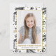 Cartões com fotos brilhantes e modernos apresentam sua foto vertical favorita emoldurada por preto e branco dourado e pinheiro, estrelas e flocos de neve em estilo de arte rabisco. Personalize com sua saudação personalizada (mostrada com "natal alegre") e sua assinatura e ano e adicione uma foto adicional e uma mensagem pessoal opcional às costas.