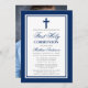 Marinho Elegante Blue e Silver Primeiro Convite da Comunidade com Cross. Foto de volta.