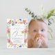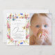 Este elegante convite fotográfico de 1rua/1º aniversário da "pequena flor selvagem" de uma rapariga apresenta um fundo branco com flores e borboletas coloridas. O verso apresenta um fundo amarelo claro com padrões florais. Altere a cor de fundo e personalize para suas necessidades. Você pode encontrar mais produtos correspondentes na minha loja.
