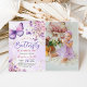 Convites Foto de primeiro aniversario de borboleta roxa e D