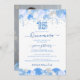 Este elegante convite da Quinceañera apresenta balões brilhantes em vários tons de azul, prata e branco. A queda de galhardetes e confete em azul e branco completa a vibração da festa. A parte de trás apresenta a sua foto favorita. Fácil de personalizar clicando em "Personalizar".