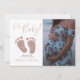 Estes convites para chuveiros de bebês, bonito e na moda, apresentam os pés de bebê bonitinhos em brilho rosa e dizem "Oh Baby" em cor-de-rosa pincelada Eles são facilmente personalizáveis com a sua foto.