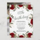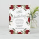Foto de Rosa vermelha Floral do Script Elegante 60º Convite de Aniversário