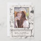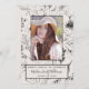 Este moderno cartão botânico e de graduação em fotos a preto contém elementos florais botânicos desenhados à mão em ambos os lados, com a foto do formando na frente, e o anúncio pessoal e o convite de festas no verso. Copyright Designs da Anastasia, todos os direitos reservados.