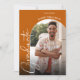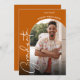Adicione a sua foto favorita à frente destes convites para festas de formatura que contêm a palavra formando em caracteres quicos juntamente com o seu nome e ano de aula. Os detalhes da sua festa estão atrás num fundo laranja queimado. Mais designs e cores feitas em nossa loja, incluindo anúncios de graduação, cartões salve a data e postais.