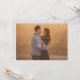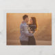 Esta fotografia simples salva a data com um script casual e uma foto grande. Na frente do cartão, "Salvar a data" é escrito em uma caligrafia dourada. O nome do casal é escrito em branco acima do roteiro, e a data e o local do casamento são escritos abaixo do roteiro. O texto em ouro e branco sobrepõe uma foto horizontal com sangramento de cheio (orientação da paisagem). Detalhes adicionais do casamento (incluindo o site do casamento) podem ser adicionados à parte traseira do cartão.