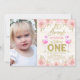 Foto de vamos flamingar 1º aniversário, 1º aniversário, convite de primeiro aniversário de vamos rosado e roxo, flamingo doce, com dois flamingos bonitos, arranjos florais cor-de-rosa e alguns textos falhos de brilho dourado. O primeiro convite de aniversário desta garota é certamente para preparar a cena para uma primeira festa de aniversário do tema flamingo.