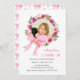 O convite de aniversário de uma menina doce e bonita apresenta um quadro de rosa com cor d'água com um arco e foto cor-de-rosa.
