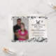 Este convite de 30º aniversário de casamento apresenta um padrão de damasco preto espiralado como fundo, uma faixa ondulada de cor pérola creme no centro e uma moldura de foto personalizável. O texto personalizável na frente e no verso permite adicionar os detalhes do convite.