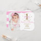 Convites Foto do aniversário de 1 ano das meninas rosa e do