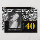 Aniversário de 40 anos de convite para fotos com a impressão zebra branca preta, com um padrão de impressão em branco preto, cor preta sólida até o fundo, foto e faixa amarela. Um na moda moderno, moderno, de um tema clássico com um toque leve de vintage/retro.Trendy, design feminino moderno e clássico, perfeito para um marco 20, 30, 40, 50, 60, 70, 80, 90 e por que não o 100º aniversário. Altere o número para o ajustado das suas necessidades.