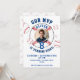 Bola De Baseball Foi Um Convite Fotográfico De Festa de aniversário. Acerte uma corrida em casa com este convite de aniversário personalizado de baseball — perfeito para o grande dia do seu pequeno MVP! Design de beisebol divertido com detalhes vermelhos de costura. Personalizado com a foto, o nome e a idade do seu filho. Excelente para rapazes ou raparigas que adoram esportes. Texto personalizável para detalhes da parte e informações de RSVP. Combina com a decoração do baseball e favores na coleção.