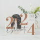 Anúncio de graduação geométrica moderna do arco de fotos. O design apresenta um padrão de linha de arco com um quadro de arco de fotos. Personalize com a foto do seu formando uma imagem de dentro moderna. Texto grande 2024 exibido ousadamente com "Formando" exibido em script elegante. Personalize com o nome do formando e a escola. O verso apresenta um padrão moderno de arco geométrico que complementa maravilhosamente o design da placa de formando frontal. Você pode mudar a cor de fundo, assim como as formas de arco para qualquer cor para complementar sua foto. Projetado por Moodthology Papery.