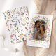 Imprima os seus convidados com esta classe guarde o cartão de data. O design alegre apresenta flores silvestres coloridas de aquarelas misturadas com folhagem verde-esfarelada. Use os campos de texto para personalizar o cartão com seu próprio texto e detalhes. A cor de fundo do convite está definida como branca, mas sinta-se livre para escolher uma nova cor de preenchimento para combiná-la com o tema do seu casamento. Se quiser alterar o estilo da fonte, a cor ou o posicionamento do texto, basta clicar no botão "Personalizar Mais".