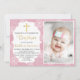 Convites Foto do Batismo Dourado com Rosas claro de flocos