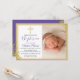Convites Foto do Batismo Dourado Roxo da lavanda