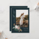 Um casamento romântico salve o anúncio de data com lindos botânicos antigos sobre um fundo textural escuro com foto retrato.