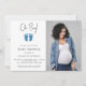 Este Convite para Chá de fraldas de na moda é decorado com pés de bebê bonitos em brilho azul e as palavras, Oh Boy! Facilmente personalizável. Substitua a foto pela sua.