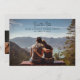 Fonte moderna de estilo manuscrito Salve a data, design de script com texto moderno acima do espaço livre na foto do noivado. O texto pode ser movido e as cores da fonte podem ser alteradas com mais personalização. A parte traseira desta foto oferece espaço para uma foto adicional e pode ser alterada para qualquer cor.