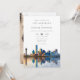 Este convite de casamento em aquarela do horizonte de Dallas pode ser personalizado com suas informações em tipografia elegante e todas as suas fotos especiais no verso. Desenhado por Thisisnotme©